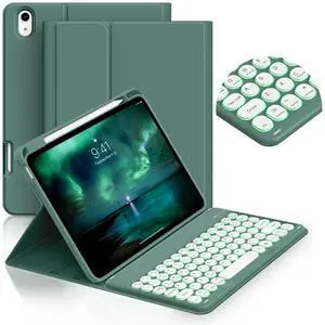 JKSML for iPad (A16) 11th/10th Gen case with Keyboard, Round Key, 7 Color Backlit, Detachable Wireless Keyboard, Stand Folio Cover with Side Pen Holder for iPad 10.9" (2022)/ 11" (2025) - Green