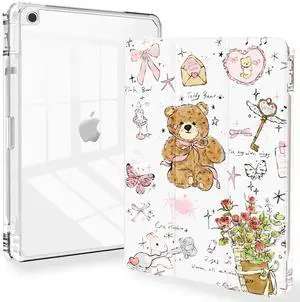 Feams for iPad 9th Generation Case, Trifold iPad 10.2 Case Clear Back Cover with Pencil Holder & Auto Sleep/Wake for iPad 9th/8th/7th Generation 2021/2020/2019, Cute Girls' Daily