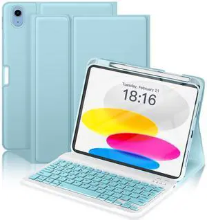 NOKBABO for iPad 11th 10th Generation Case with Keyboard, Magnetic Wireless Detachable Folio case with Pencil Holder, Keyboard for iPad 11th(A16,2025) & 10th Generation(2022) - Sky Blue