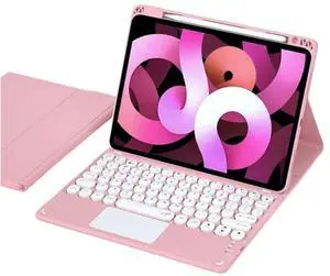 NUWONAYA Keyboard Case for iPad (A16) 11th/iPad 10th Gen with Touchpad, Candy Color Round Keys Magnetic Detachable Keyboard with Multi-Touch Trackpad and Pencil HolderPink