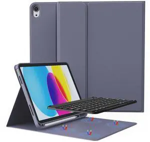 ZOPSGYU Case with Keyboard for iPad (A16) 11th Generation 11 Inch 2025, iPad 10th Generation 10.9 Inch 2022, Detachable Magnetic Keyboard, Full Protective Cover with Pencil Holder, Purple