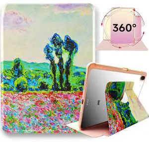 Fulbrio Arts Rotating Case for iPad Air 4/5 Gen, 2020/21, Folio with Pencil Holder, 360 Rotation, White Cyan-Blue (Poppy Field by Claude Monet)