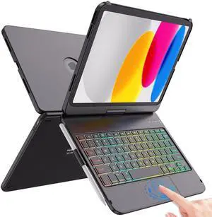 aoub Keyboard Case for iPad (A16) 11th Generation 11-inch 2025, iPad 10th Generation 10.9 inch 2022 with Pencil Holder, 7 Color Backlit Detachable Wireless Bluetooth Keyboard Stand Folio - Black