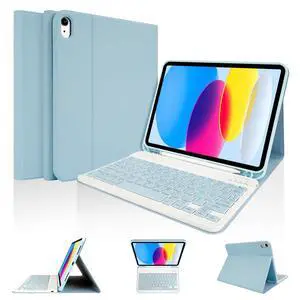 KSFFLO for iPad 10th Generation Case with Keyboard,7 Color Backlit, Detachable Keyboard with Pencil HolderBluetooth Keyboard for 10.9 inch 2022(Included Capacitor Pen Cleaning Cloth) (Black)