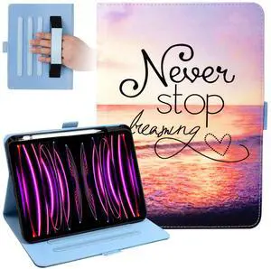 Dteck for iPad 11th/10th Generation 10.9 Inch 2022 Case with Pencil Holder,Premium Leather Folio Multiple Viewing Angles Stand Cover Auto Wake/Sleep Protective Cases for Women Men,Never Stop