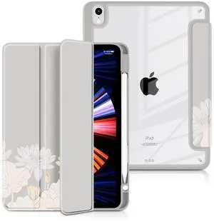 MEEgoodo Case for iPad Air 11 inch M3 2025 / M2 2024,for iPad Air 5th / 4th Generation Case 10.9 inch 2022/2020, Tablet Cover with Acrylic Transparent Back Shell, Pink Cosmos Flower