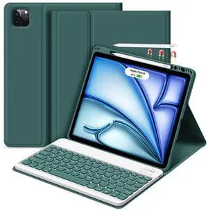 GOKOCO for iPad Air 13" M3 2025/Air 13 inch M2 2024 Case with Keyboard-Keyboard Case for iPad Pro 12.9" 6th/5th/4th/3rd Gen with Pencil Holder,Detachable Keyboard,Auto Sleep/Wake Function-Dark Green