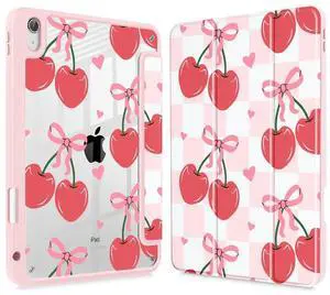 Tuiklol for iPad Pro 11 Inch Case M2 2022 Gen 4th -Built-in Pencil Holder Shockproof Cover Clear Transparent Back Shell Fit for iPad 11 2021 2020 2018 Gen 3rd/2nd/1st for Kid, Etro Cherry