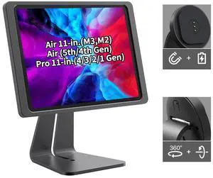 EMONITA Magnetic Stand on Desk with Charging Case A9 for iPad Air, iPad Pro 11-Inch, Classic L Shape, Sturdy Metal Base, Strong Magnets, 360 Rotation, 90 Tilt