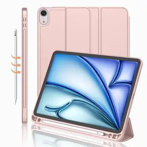KTGGHG Slim Case for iPad Air 11-inch M3/M2 2025/2024, iPad Air 5th/4th Gen 10.9-inch 2022/2020 with Pencil Holder, Foldable Trifold Stand Smart Cover with Soft TPU Back, Auto Wake/Sleep, Pink