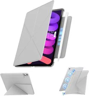 for iPad mini 7 (A17 pro) case/iPad mini 6 case, Slim Powerful Magnetic Attachment Corner Protective iPad Folio Case with Auto Wake/Sleep and Hidden Pencil Holder (Concrete Gray, iPad mini 7/6)