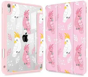 Lepeoac Case for iPad 11 inch A16 2025 Generation 11th / iPad 10.9 inch 2022 10th Gen, Buit in Pencil Holder with Shockproof Cover Clear Transparent Back Shell Auto Wake/Sleep, Parrots