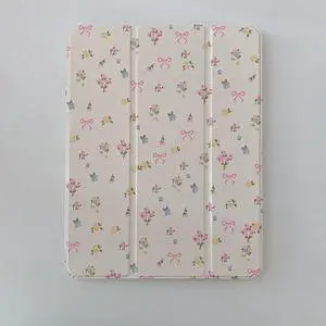 Slim Leather Hard Folio Case with Adjustable Stand Pencil Holder for Apple Cream White Pink Bow Flower Floral Chic Cute Lovely Adorable Girls Kids (for iPad mini 6 8.3-inch 6th Generation 2021)
