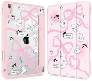 Mektron for iPad 11th/10th Generation Case 2025 iPad 11 inch A16 Cover with Pencil Holder Fit iPad 10.9 inch 2022 Shockproof Clear Shell, Pink Bows-Rabbits