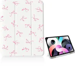 Girly Cute Bow Tie Case for iPad 11 inch (A16 Chip) 2025 Generation 11th/iPad 10.9 inch 2022 10th Gen with Pencil Holder and Auto Sleep/Wake,White Leather Soft TPU Back Shell Stand Cover