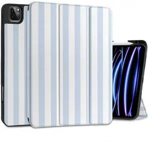 DONGKE Case for 2022/2021/2020/2018 iPad Pro 11 inch Gen 4/3/2/1 - Slim Protective Case - Built in Pencil Holder Support Charging - Trifold Stand & Sleep/Wake Cover- Blue Stripes