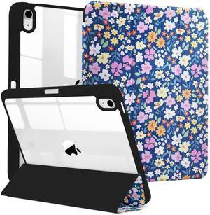 MrARTIST for iPad A16/10th Generation Case - Tablet Case Cute for Women Girls Girly Kawaii Aesthetic Preppy Kawaii Chic Cool Flowers Design for Apple Tablet Cover with Pencil Holder, Blue Floral