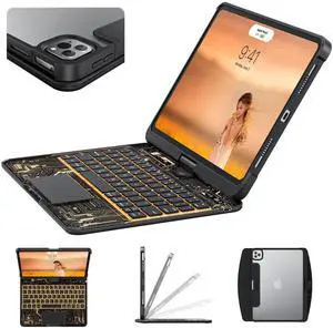 For iPad Air 11 Inch Case with Keyboard (Air M3/M2/6/5/4), 360 Rotating for iPad Pro 11 Inch Magic Keyboard (Pro 4/3/2/1), Cyberpunk High-tech with Pressure Reduction Sound Effect, Transparent Black
