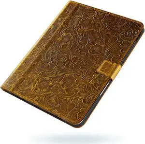 Gexmil Leather Case for iPad Pro 12.9 Inch,6th/5th/4th/3rd Generation 2022/2021/2020/2018 with Pencil Holder Magnetic Buckle,Genuine Leather Folio Cover,Auto Sleep/Wake,Flower Brown