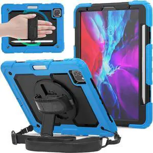 DuraSafe Cases iPad 12.9 6th 5th 4th 3rd - PRO 12.9 [ Pro 12.9 3/4 / 5/6 Gen ] A2436 A2764 A2437 A2378 A2461 A2379 A1876 A2014 A1895 A2229 A2069 A2232 Shock Proof Cover with Shoulder Strap - Blue