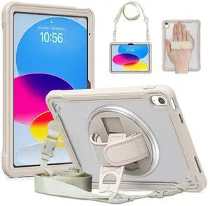 CAMELLOFUL Case for iPad (A16) 11th/10th Generation 2025/2022 11/10.9 inch, Rugged Shockproof Protective Cover with Screen Protector, 360 Rotating Hand Strap&Stand, Pencil Holder, Khaki