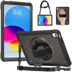 CAMELLOFUL Case for iPad (A16) 11th/10th Generation 11/10.9 inch 2025/2022, Full-Body Drop Protection Cover with Screen Protector, 360 Rotating Hand Strap/Stand, Pencil Holder, Black