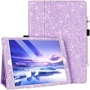 Fingic iPad Case for 9th/8th/7th Gen, Pro 10.5 inch with Pencil Holder, Glitter Sparkle Slim Folio Stand Auto Wake/Sleep PU Leather Cover for iPad 9 8 7,10.2", Purple
