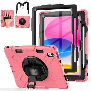 Case for iPad 11th Generation 11" (A16) 2025,iPad 10th Generation 10.9" 2022,Shockproof Cover for Kids with Screen Protector,Rotating Stand,Pencil Holder,Shoulder Strap (Colourful Pink)