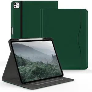 Jarviwiin Case for iPad Pro 13 inch M4 (7th Generation 2024), Multi-Angle PU Leather Cover for iPad Pro 13" (7 Gen) with Pencil Holder/Hand Strap, Auto Wake/Sleep, Deep Green
