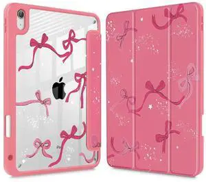 Tuiklol Case for iPad Pro 12.9 Inch M2 Case 2022 2021 2020 2018 Generation 6th/5th/4th/3rd,Built-in Pencil 2nd Holder Clear Transparent Protective Back Shell Cover, Bow-Watermelon Red