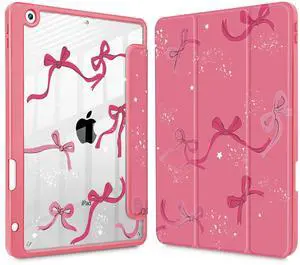 Tuiklol for iPad 10.2 case 2021 Gen 9th Release Built in Pencil Holder - Trifold Stand-Auto Wake/Sleep TPU Protection Stand Clear Back Cover for 2020 2019 [8th/7th] iPad 10.2 Case,Bow-Watermelon Red