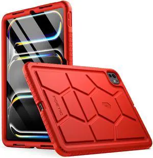 Poetic TurtleSkin Case for iPad Pro 11 Inch 2024 M4 5th Gen, Heavy Duty Shockproof Rugged Kids Friendly Drop Protection Silicone Cover Case, Red