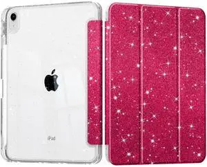 Lepeoac Sparkly Case for iPad Air 11'' (M3 2025/M2 2024) 6th Gen/iPad Air 10.9'' 2022 2020 Air 5th /4th Gen, Buit in Pencil Holder with Glitter Transparent Back Cover Auto Wake/Sleep, Sparkly-Red