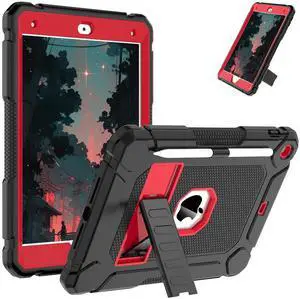 AVAWO Case for iPad 9th/8th/7th Generation(10.2 inch, 2021/2020/2019), Heavy Duty Military Grade Shockproof Protective Cover with Built-in Stand/Pencil Holder for i Pad 9/8/7 Gen, Black and Red