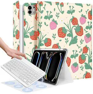 Wazzasoft for iPad Pro 11 inch Case with Keyboard M4 - Pencil Holder Folio Women Girls Cute Kawaii Unique Design for Apple Tablet Cover Pro 11 2024, Red Strawberry