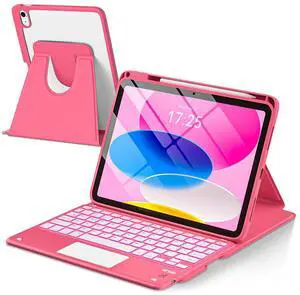 Touchpad for iPad A16 11th/10th Generation Case with Keyboard, 7 Color Backlit 360 Rotation Cover with Pencil Holder,Detachable Keyboard for iPad 11 inch 2025/10th Gen 10.9'' 2022 (Watermelon Red)