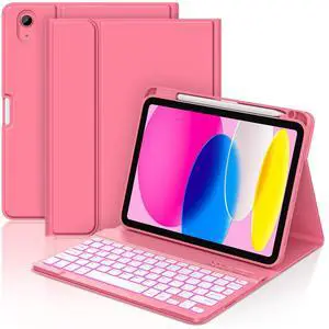 CHESONA for iPad 10th Generation Case with Keyboard, 7 Color Backlight, Multi-Touch Trackpad, Flip Stand Case with Pencil Holder, 2 Wireless Channels for iPad (A16) 11th/10th Gen (2025/2022), Red