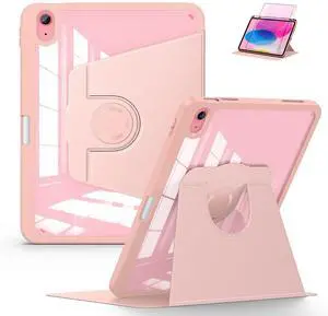 Soke Rotating Case for iPad (A16) 11th Generation 2025, iPad 10th Gen 2022 with Pencil Holder, [Shockproof + Auto Sleep/Wake] 360 Degree Rotation Clear Back for iPad 11"/10.9" - Rose Gold