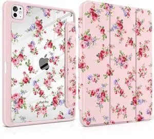 Loyrina Case for iPad Pro 13 inch (M5) 2025 (M4) 2024 Release Slim Lightweight Cute Light Pink Cover with Clear Back TPU Edge Pencil Holder Trifold Stand, Elegant Rose