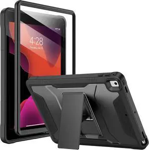 Rantice Case for 9th/8th/7th Generation, Hybrid Shockproof Rugged Drop Protective Case with Kickstand for iPad 10.2 Inch (2021/2020/2019 Release), Black