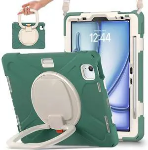 SCSVPN for iPad Air 11 Inch Case M3/M2 (7th/6th Gen., 2025/2024), iPad Air 5th/4th Gen 10.9''(2022/2020), iPad Pro 11''(2020-2018) Protection Cover with Pen Holder+Stand+Shoulder Strap, Emerald Green