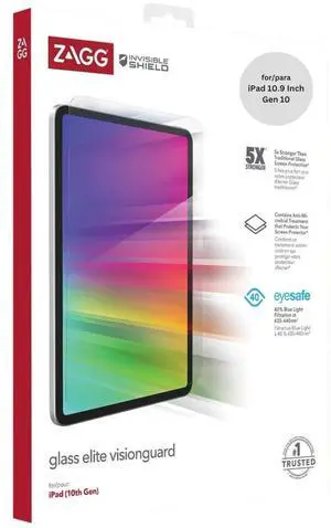 ZAGG InvisibleShield Glass Elite VisionGuard Screen Protector for iPad 10th Generation 10.9 Inch (Gen 10, 2022) - 5X Stronger, Blue-Light Protection, Anti-Fingerprint, Easy Install, Clear