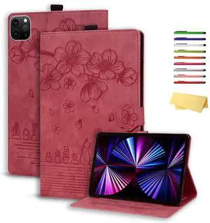UUcovers Stand Case for iPad Air 11 inch M3 2025/M2 2024,iPad Air 5th/4th Gen 10.9" 2022/2020 & iPad Pro 11 inch Case 4th/3rd/2nd/1st Gen with Pencil Holder,Auto Sleep/Wake,Cherry Blossom Wine Red Cat