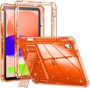 INFILAND Kids Case for iPad A16 11 inch 11th Generation,iPad 10th Generation Case 10.9 Inch, Heavy Duty Shockproof Protective Cover with Stand, Glitter Clear Cute Shell for Girls, Women (Orange)