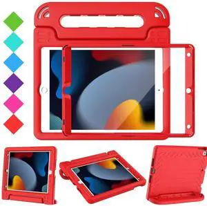 BMOUO Kids Case for iPad 9th/8th/7th Generation (iPad 10.2", 2021/2020/2019) - with Screen Protector, Shockproof Light Weight Handle Stand iPad 10.2 9th/8th/7th Generation Case for Kids, Red