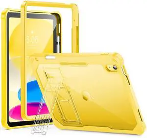 INFILAND Kids Case for iPad 10th Generation Case 10.9 Inch, iPad A16 11 inch 11th Generation, Heavy Duty Shockproof Protective Cover with Stand, Glitter Clear Cute Shell for Girls, Women Solid Yellow