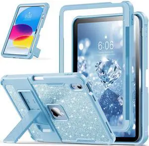 INFILAND Kids Case for iPad A16 11 inch 11th Generation,iPad 10th Generation Case 10.9 Inch, Heavy Duty Shockproof Protective Cover with Kickstand, Glitter Cute Shell for Girls, Women, Kids (Blue)