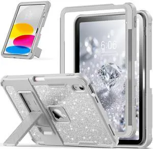 INFILAND Kids Case for iPad A16 11 inch 11th Generation,iPad 10th Generation Case 10.9 Inch, Heavy Duty Shockproof Protective Cover with Kickstand, Glitter Cute Shell for Girls, Women, Kids (Clear)