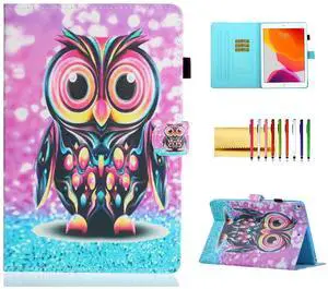 Case for iPad 7th/8th/9th Generation 10.2-inch (2019-2021), Techcircle Pretty Folio Magnetic Protective Smart Stand Cover with Card Slots, Auto Wake/Sleep, Cute Owl