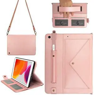 7.9-inch iPad mini Case with Pencil Holder, Techcircle Smart Folio Stand PU Leather Crossbody iPad mini Series Cover with Hand Strap, Multiple Card Slots Envelope Pocket Wallet Case, Rose Gold